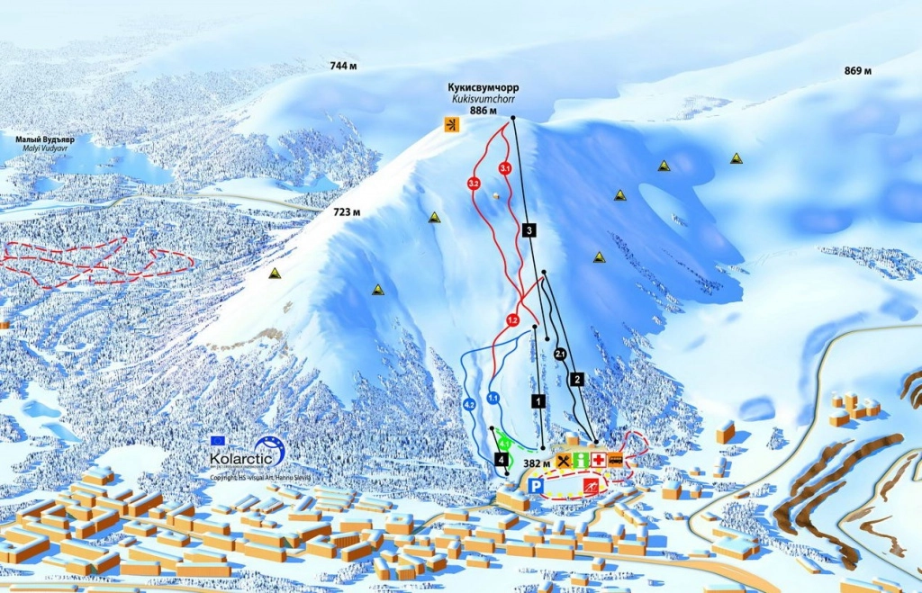 Схема горнолыжных трасс Кукисвумчорр. Хибины.