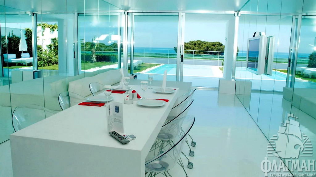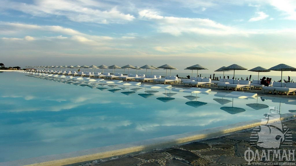 Адам и Ева 5* – стильный дизайнерский отель категории VIP с огромными номерами, цвет вечернего освещения которых можно менять в зависимости от настроения. Позиционирует себя как лидирующий в Европе отель для пар. Гостиница принимает к размещению только взрослых туристов старше 16 лет! Задача строителей отеля была создать эффект особой легкости, чистоты и элегантности, в интерьерах абсолютное господство белого цвета, отделочные материалы изобилуют применением стекла и зеркал. Инфраструктура гостиницы полностью соответствует статусу De Luxe. В отеле часто выступают звёзды российской, турецкой эстрады. В ночном клубе гастролируют ведущие европейские DJ. Кстати, персонал отеля это ... ангелы. Они помогают гостям везде и во всём!