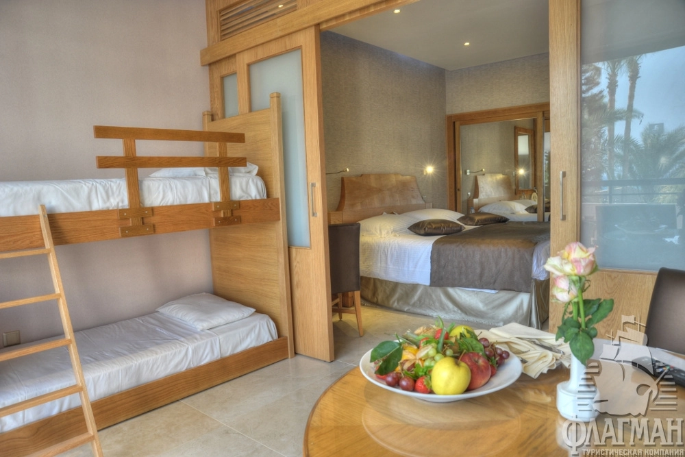 3. Для молодоженов: 1 бутылка кипрского шампанского, фрукты и цветы в номер в день заезда, предоставление номера более высокой категории (при наличии у отеля такой возможности).