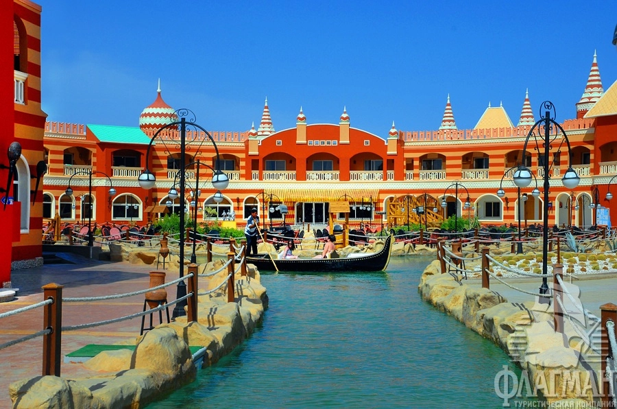 По территории проложен собственный водный канал, по которому гости могут покататься на гондолах..