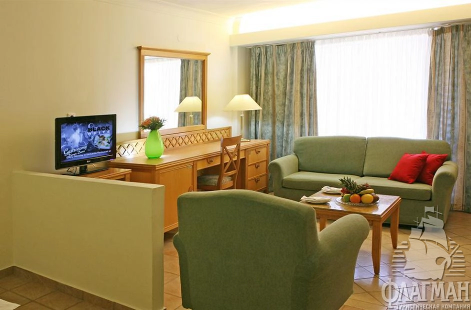 - junior suite SV (вид на море, однокомнатный номер, спальня с гостиной зоной, осн. кровать – двуспальная, макс. 2 чел., 42 м2),