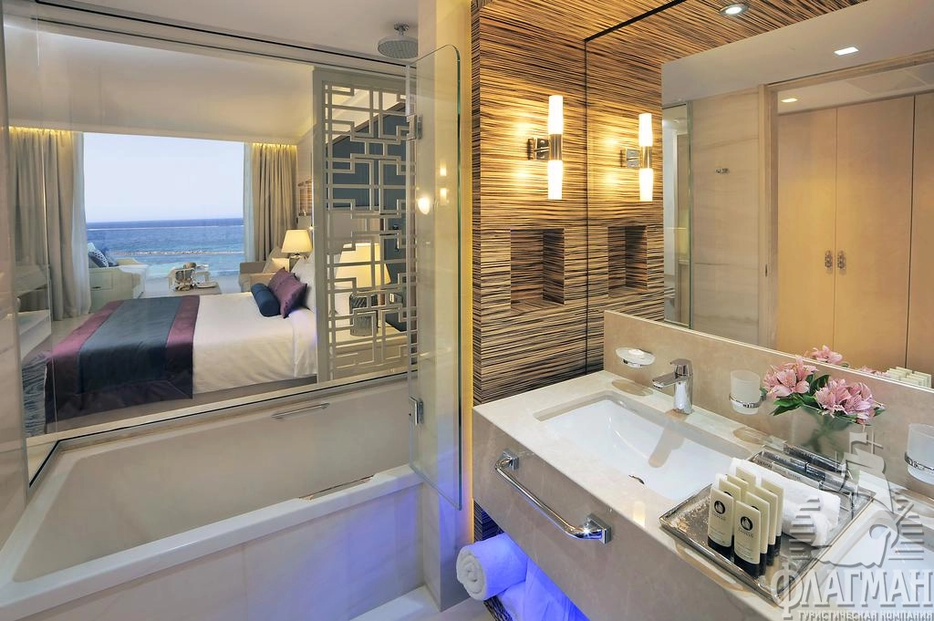 - One Bedroom Executive Suite Sea View (макс. 2 чел., 89 м2) –двухкомнатный номер c отдельной спальней и гостиной, ванная комната, просторный балкон с 2 шезлонгами, вид на море.