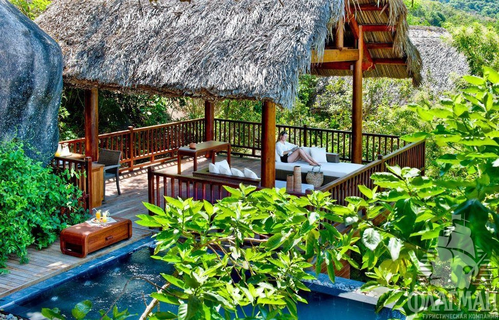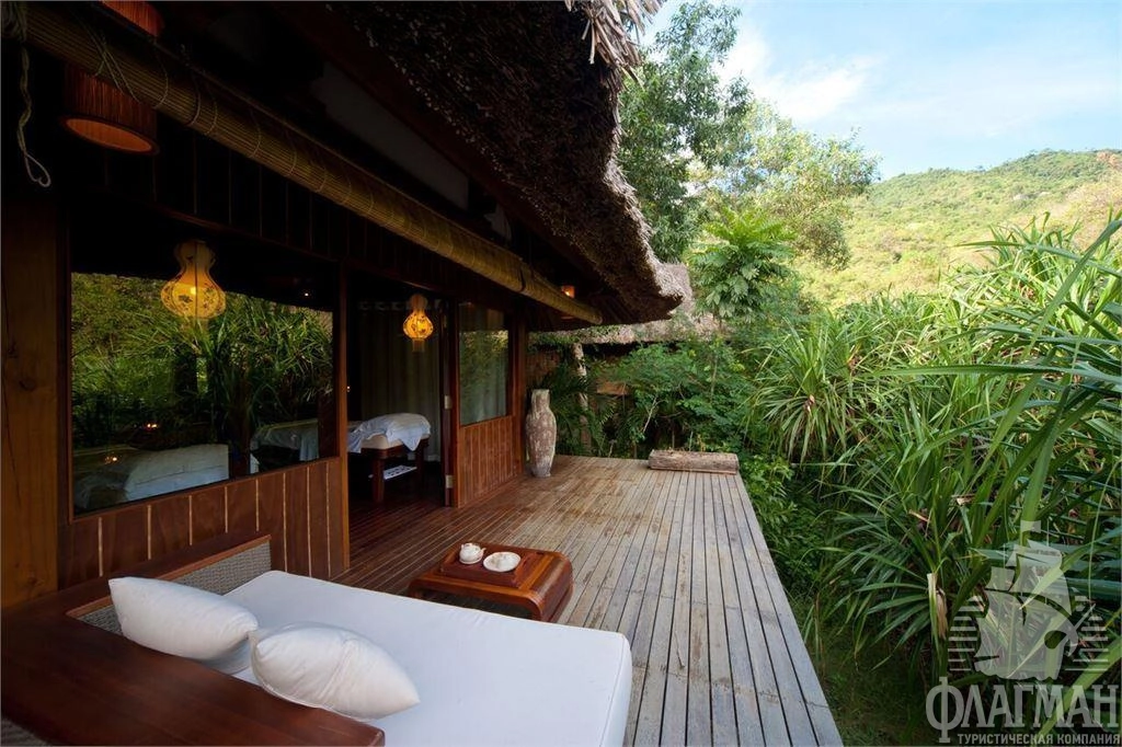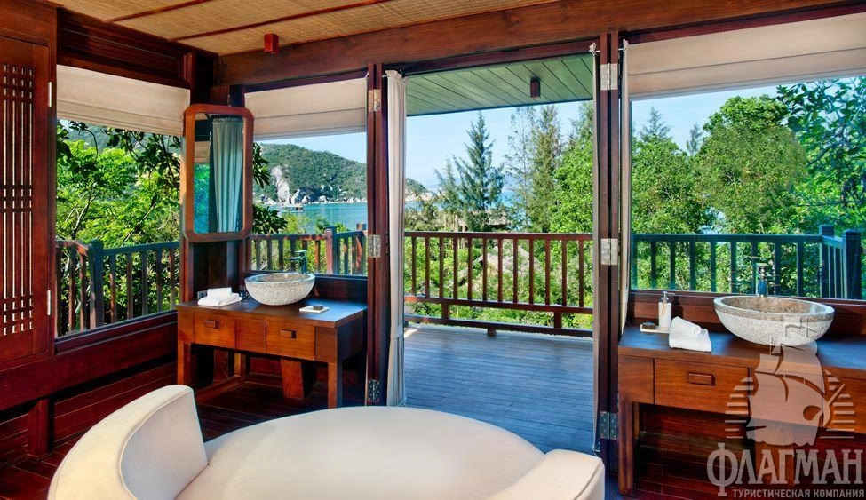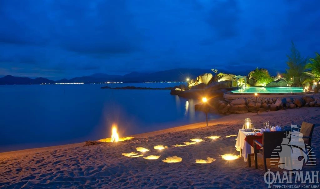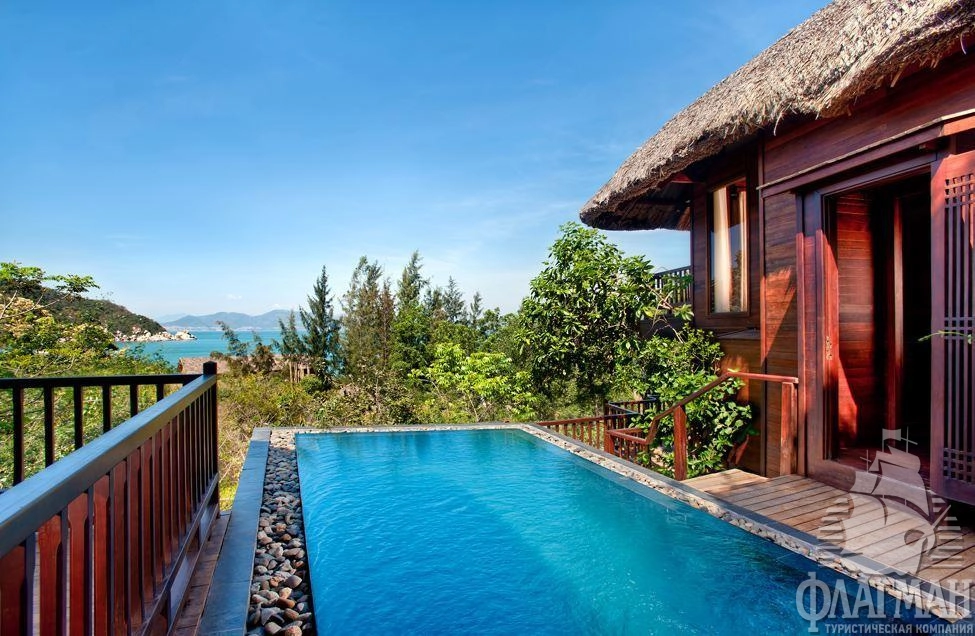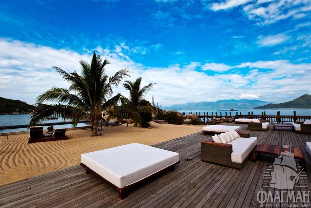 Ан Лам Нинх Ван Бэй 5* находится в 24 км к северу от центра города Нячанг (45 мин езды, авто+катер), на берегу моря, на уединенном пляже. Был открыт в 2011 г., последняя реновация проводилась в 2015 г. Номерной фонд отеля насчитывает 33 виллы, в которых есть бассейн, ванна, ТВ, кондиционер, сейф, мини-бар, питьевая вода, набор для приготовления чая/кофе, кофеварка, фен и бесплатный Wi-Fi. Рекомендуем для комфортного отдыха.