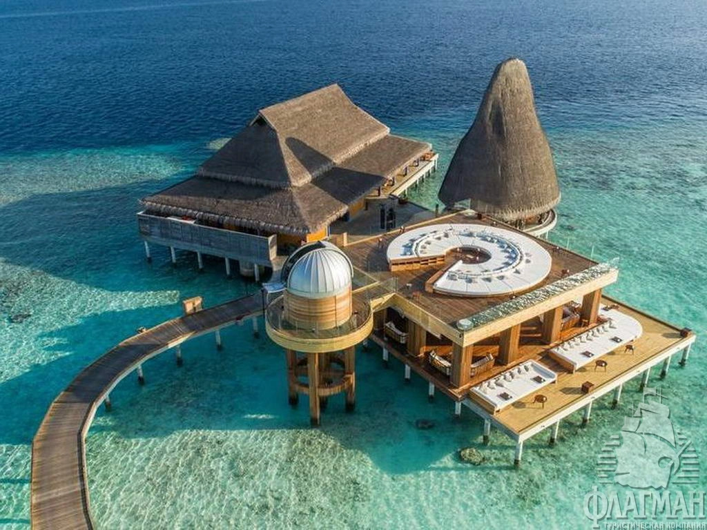 Sky - лаунж над водой, часть обсерватории с мощнейшим телескопом на Мальдивах. Открыт для аперитивов, коктейлей перед ужином. В меню - лёгкие напитки и закуски.