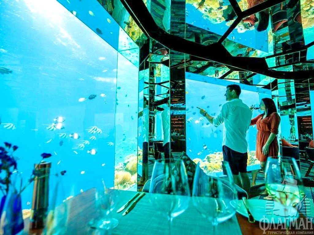 Sea - подводный ресторан, где предлагают изысканные блюда в окружении океанических волн. Ресторан с винным погребом, расположенный под водой, в окружении живого домашнего рифа и его сказочных обитателей. Открыт на завтраки, обеды и ужины по предварительной записи.