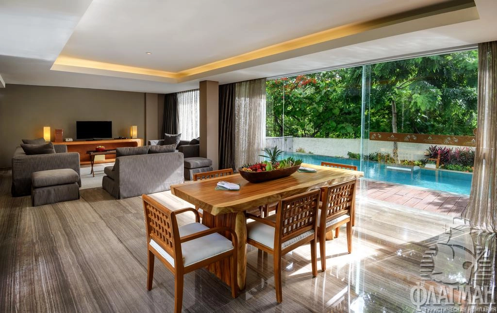 Современный отель Анантара Уливату 5* расположен на первой береговой линии. Роскошные виды на океан - визитная карточка гостиницы, именно поэтому ее часто выбирают для проведения свадебных церемоний. Также к услугам гостей: фитнес-центр, спа-центр, бары, рестораны, конференц-зал, бассейн инфинити и мини-театр. Wi-Fi предоставляется бесплатно. Рекомендуем для романтического отдыха.