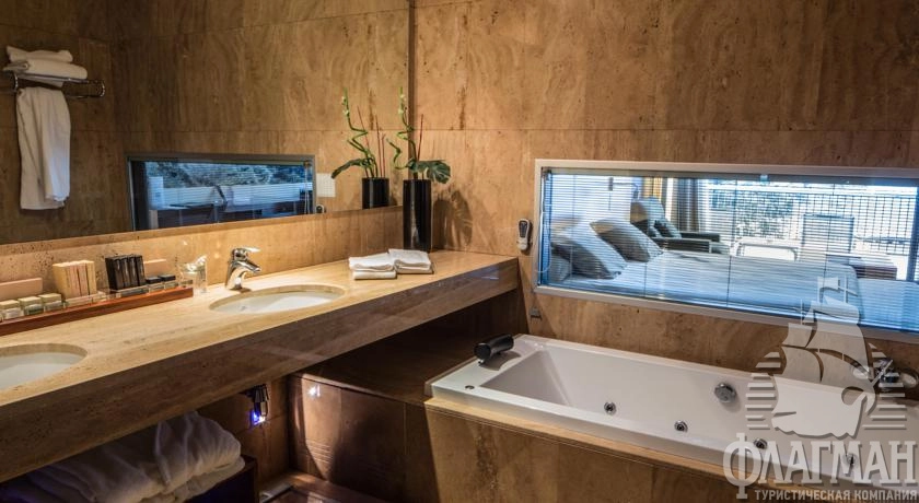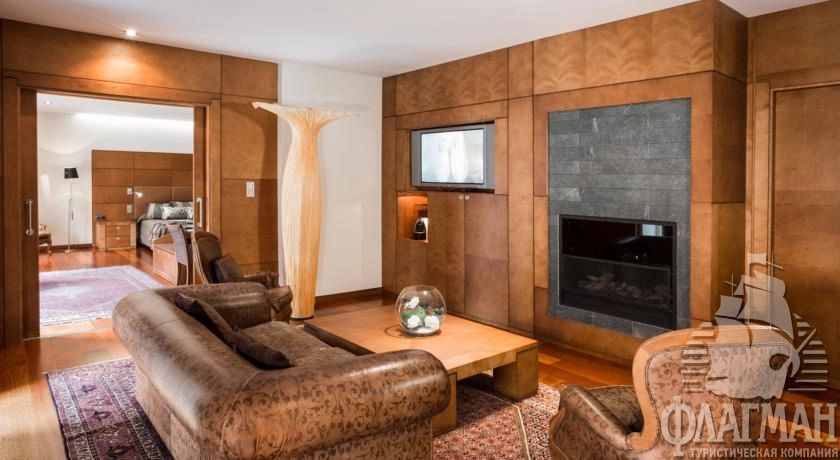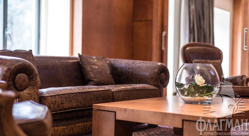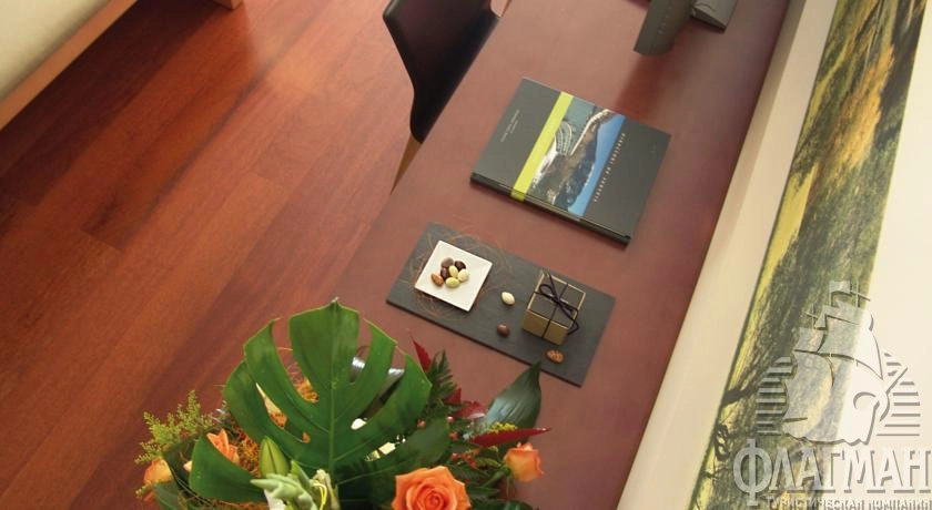 - 1 Presidential suite (две спальни с кроватями king-size, 2 ванные комнаты; холл, гостиная (есть кофемашина), плазменный телевизор и камин, терраса с шезлонгами с видом на сад, макс. 6 чел., 150 м2).