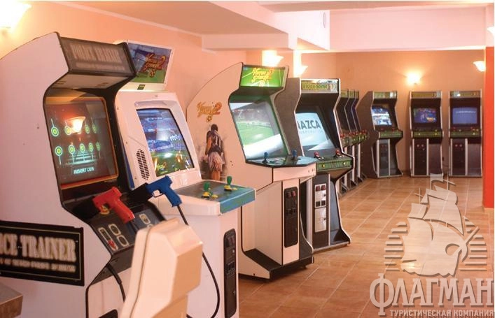 - бары: 2 (пиано-бар в отеле Olimpo, американский бар в отеле Antares)