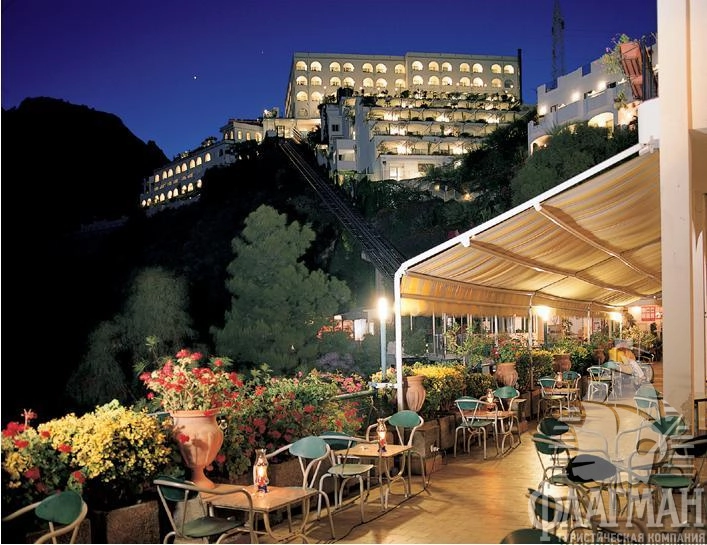 Современный гостиничный комплекс из трех отелей 4* (Olimpo, Le Terrazze и Antares) расположен на острове Сицилия, в 65 км аэропорта Катании, в 50 км от столицы провинции г. Мессина, в 9 км от железнодорожной станции Таормина, в курортном городке Летойянни, в 300 м от моря. Гостиничный комплекс террасами спускается к морю по территории парка площадью 3000 м2. Спуск к морю – на панорамных лифтах-эскалаторах.