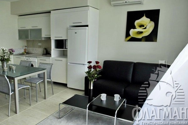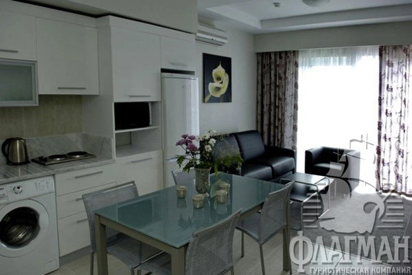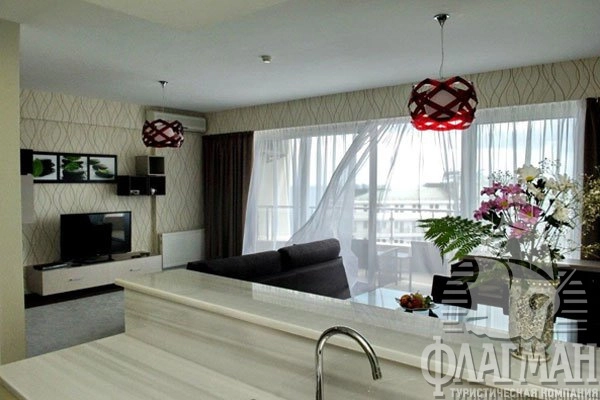 В стоимость отдыха включено лишь проживание в апартаментах. Номера отеля оснащены всей необходимой бытовой техникой и качественной мебелью, которая позволит отдыхающим отдохнуть без проблем для здоровья.