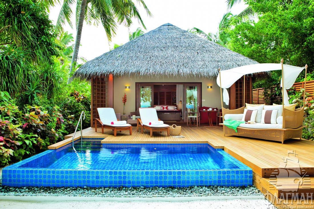 1 Baros Residence with Private Pool (268 м2, макс. 3 или 2+1 чел.). Уединенная отдельно стоящая просторная вилла на берегу, окруженная тропической зеленью: спальня с кроватью king-size, зона гостиной, частный бассейн (7x3 м), частный садик, ванна и душ в ванной комнате, ливневый душ под открытым небом, просторная веранда с тахтой для отдыха, небольшая коллекция книг и дисков.