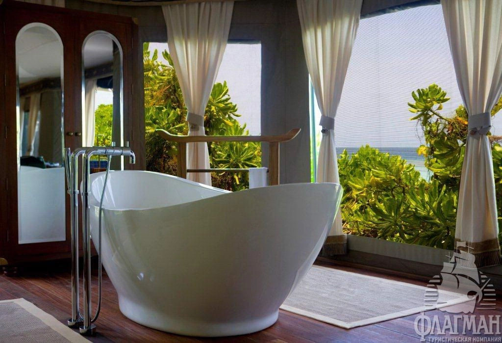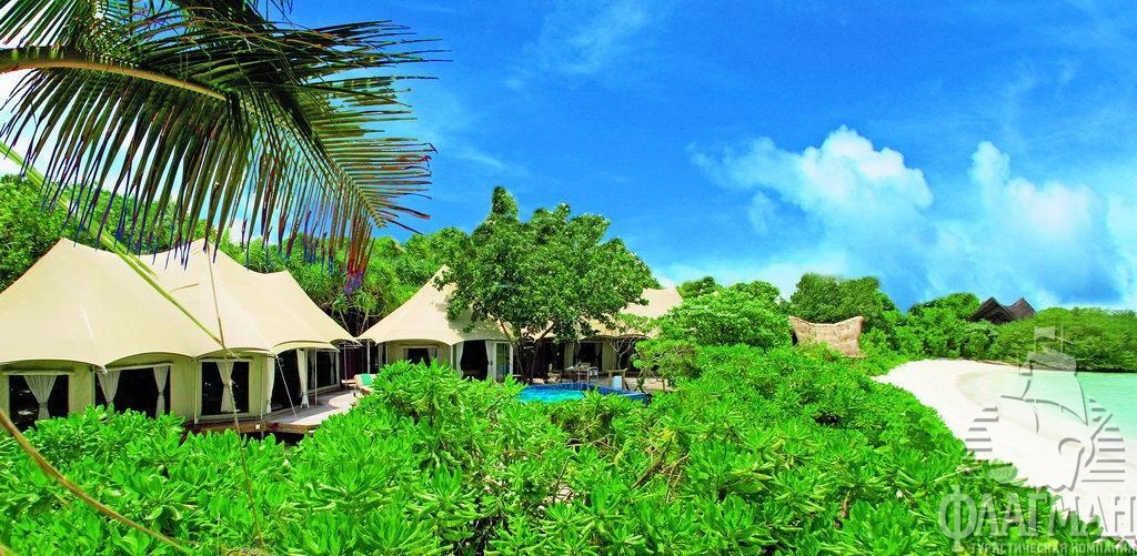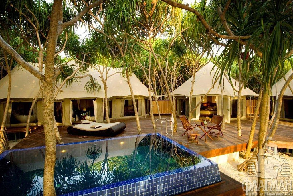 Роскошные, отдельно расположенные береговые виллы состоят из трех шатров: гостиная, спальня и ванная комната. В спальне кровать king size, дополнительная кровать для третьего человека устанавливается в отдельном павильоне гостиной. Деревянная мебель ручной работы. Собственный бассейн (21 м2) на открытой террасе.