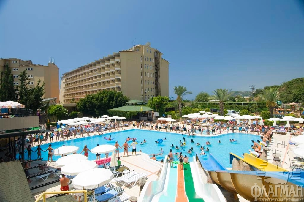 Расположен в 125 км от аэропорта г. Анталья, в 7 км от г. Аланья, в 5 км от поселка Конаклы, в 100 м от пляжа (проход через дорогу по подземному переходу).