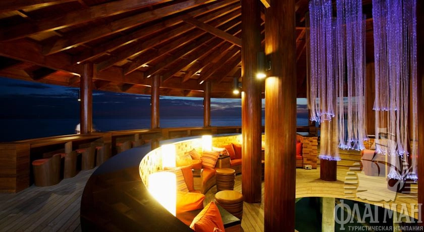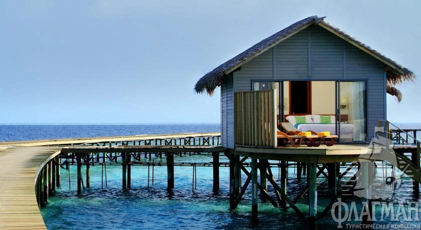26 Deluxe Sunset Water Villa (42м2, макс. 2 чел.). Водные виллы c видом на закат. Кровать king-size (23 номера) или twin (3 номера), ванная комната с ливневым душем. Просторная меблированная терраса с прямым спуском в океан.