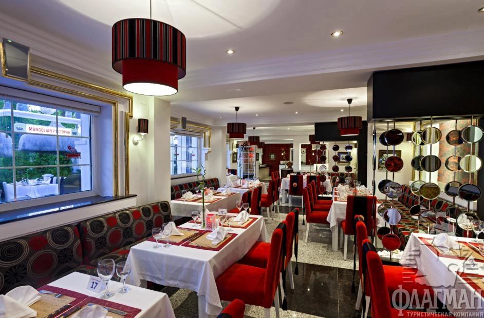 - рестораны a la carte: 2 (итальянский – по предварительной записи, за неделю проживания посещение ресторана 1 раз – бесплатно, монгольский – платно, все напитки – платно)