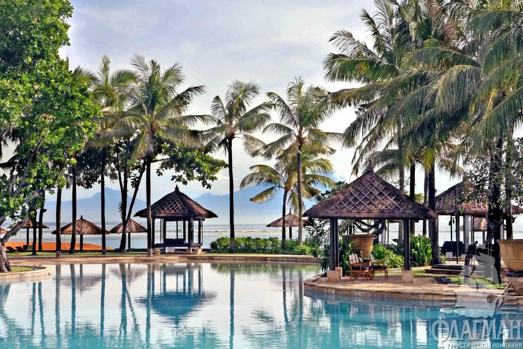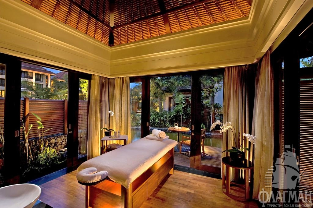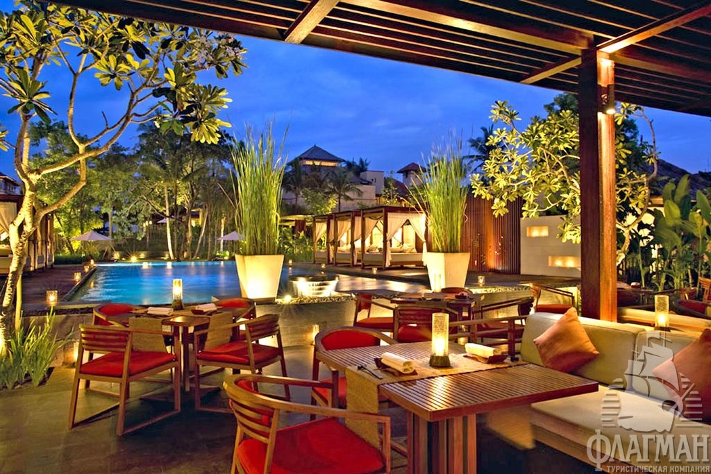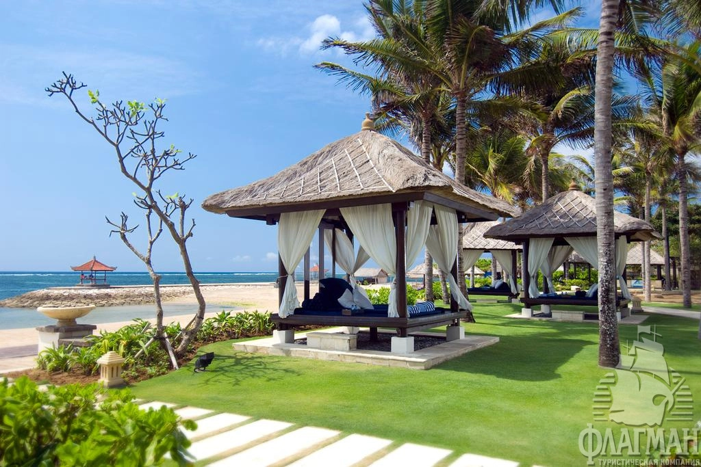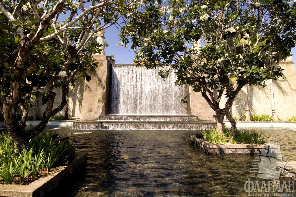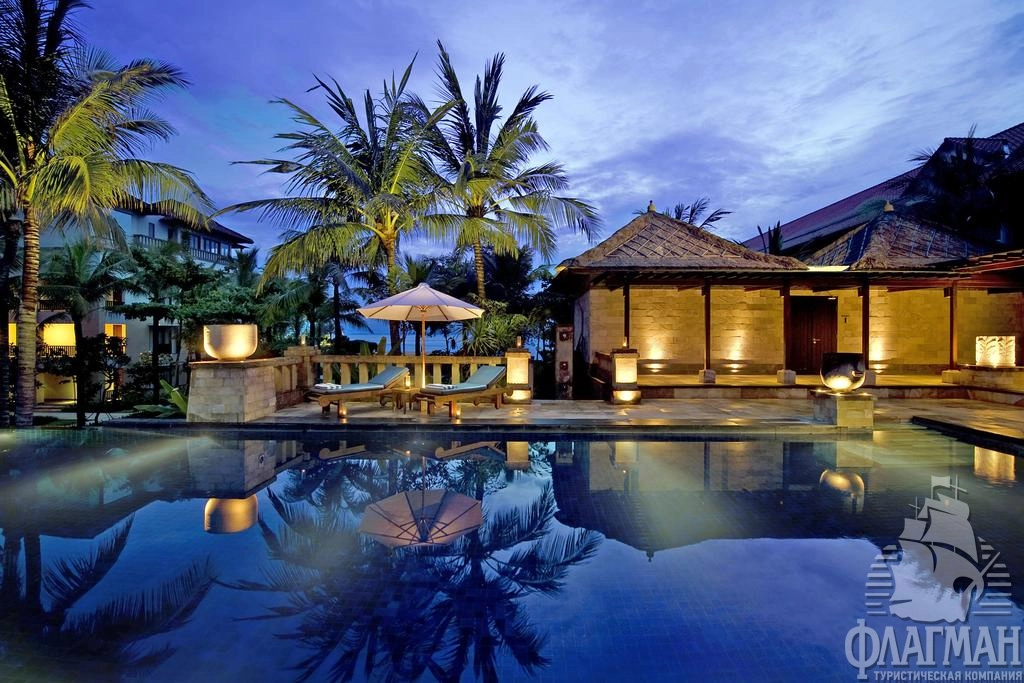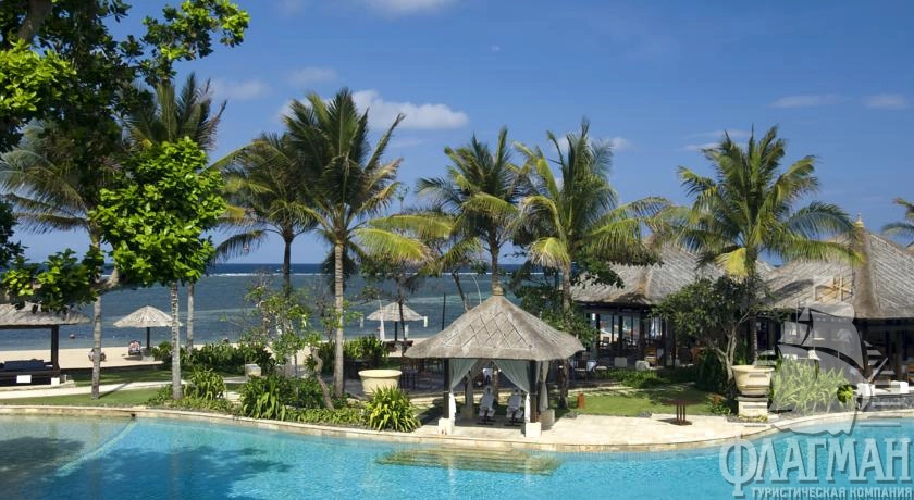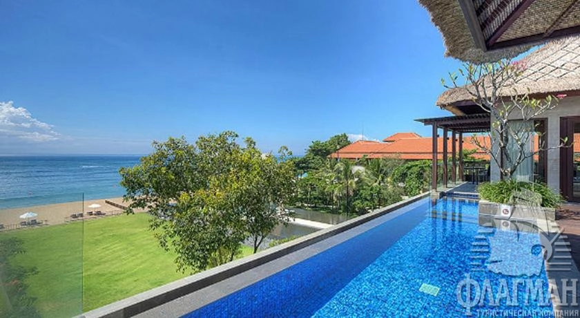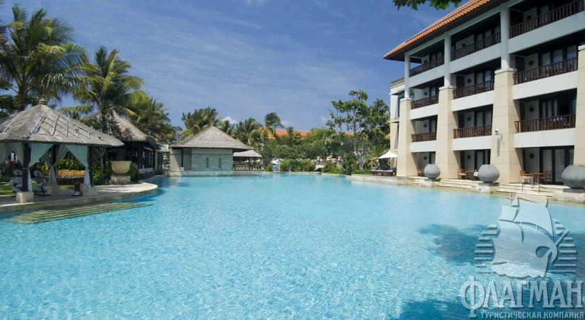 Конрад Бали 5*– элегантный отель, расположенный на берегу 300-метрового собственного пляжа Танжунг Беноа, был построен в 2004 году. Территория отеля занимает 6,8 гектаров, покрытых тропическим садом с лагунами и каскадами льющихся водопадов. Большую часть территории отеля занимает водное пространство. Бассейн лагунной формы огибает 3 корпуса отеля. Отель построен в стиле модерн, просторные холлы, не загроможденные пространства. Рекомендуем для семейного отдыха, поскольку это единственный отель, где даже в SPA есть детское меню.