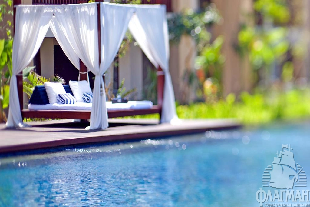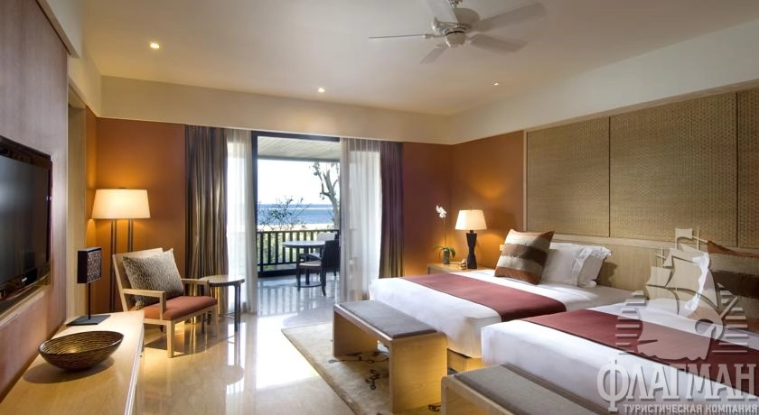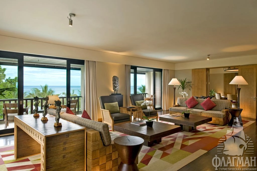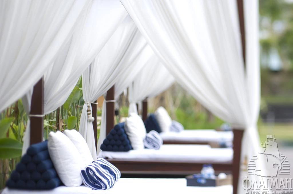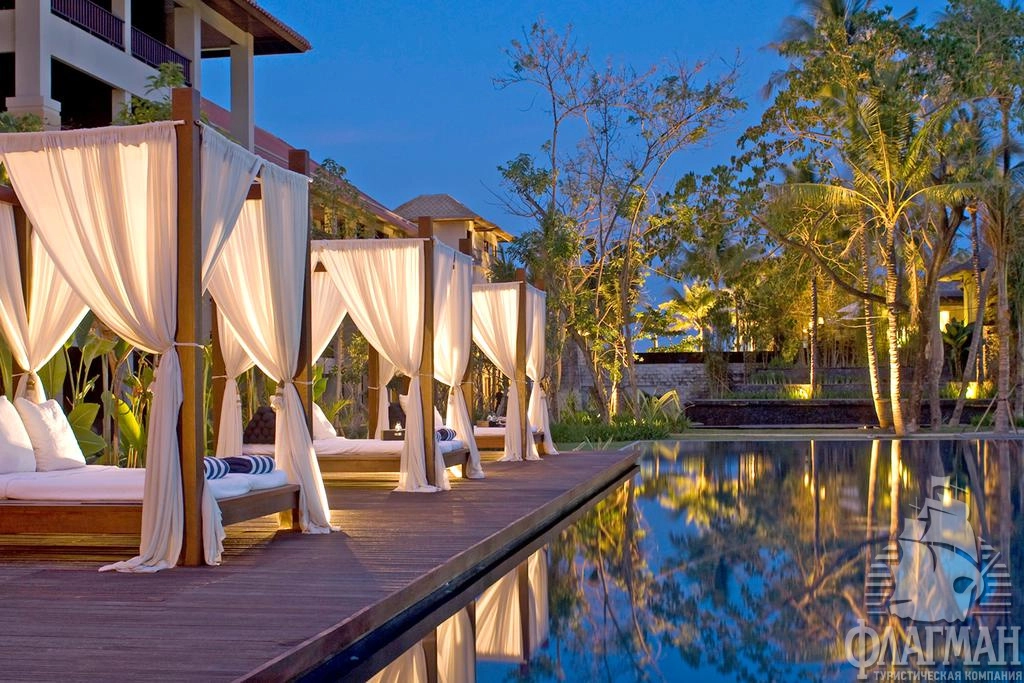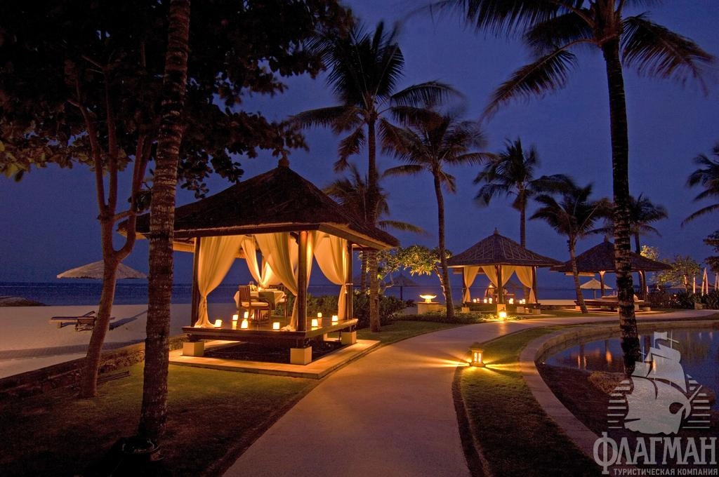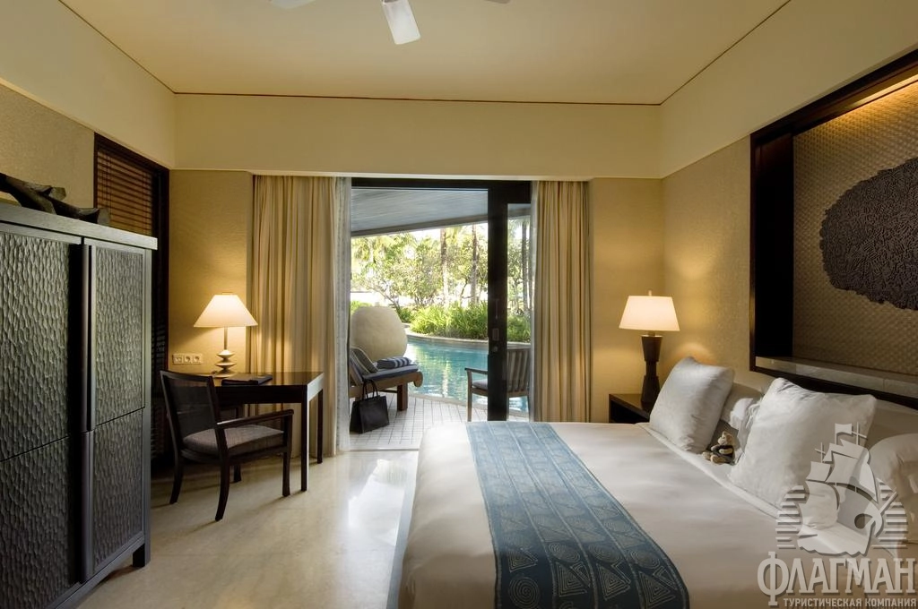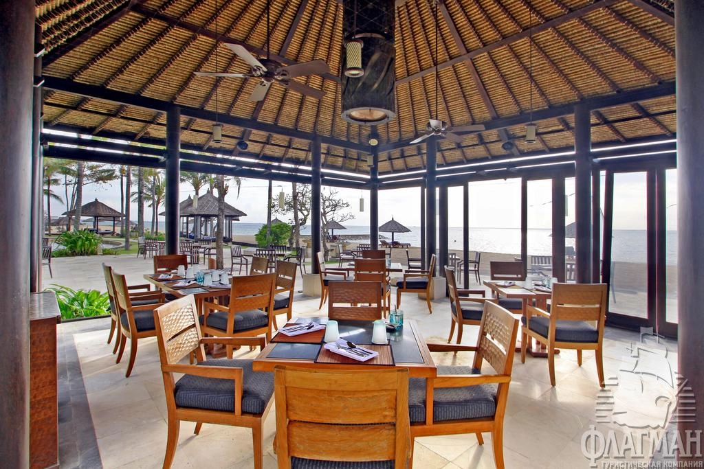 Конрад Бали 5*– элегантный отель, расположенный на берегу 300-метрового собственного пляжа Танжунг Беноа, был построен в 2004 году. Территория отеля занимает 6,8 гектаров, покрытых тропическим садом с лагунами и каскадами льющихся водопадов. Большую часть территории отеля занимает водное пространство. Бассейн лагунной формы огибает 3 корпуса отеля. Отель построен в стиле модерн, просторные холлы, не загроможденные пространства. Рекомендуем для семейного отдыха, поскольку это единственный отель, где даже в SPA есть детское меню.