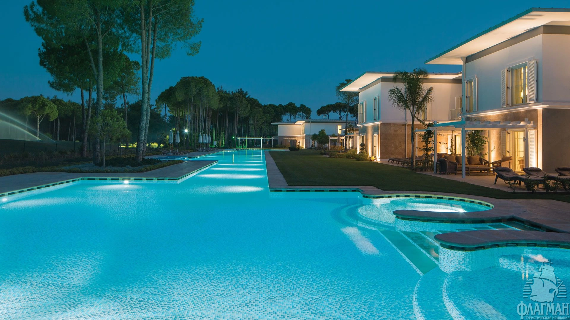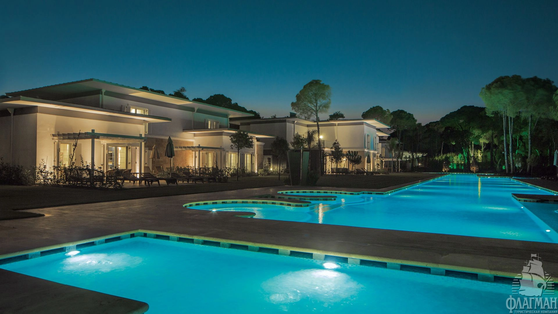 Расположен в 35 км от аэропорта и в 45 км от центра Антальи, в 2 км от поселка Белек, между отелем Cornelia Diamond Golf Resort & Spa и Cornelia Гольф клубом, в 500 м от собственного пляжа.