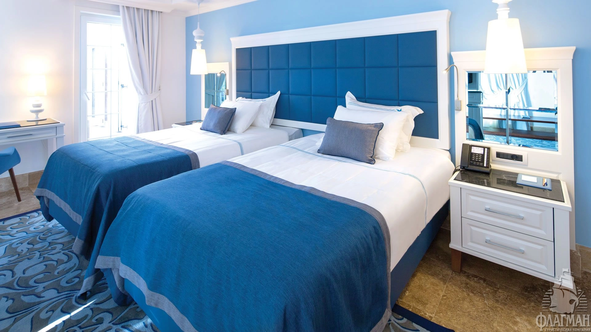 7 двухуровневых Azure Villa 3 - с 3 спальнями (на первом уровне: гостиная с мини-кухней и барной стойкой, спальня с дверью, ванная с ванной и душем, терраса, на втором уровне: 2 спальни с дверью, 2 ванные: одна с джакузи и душем, другая с ванной и душем, макс. 6+3 чел., 220-310 м2, VIP-сервис).