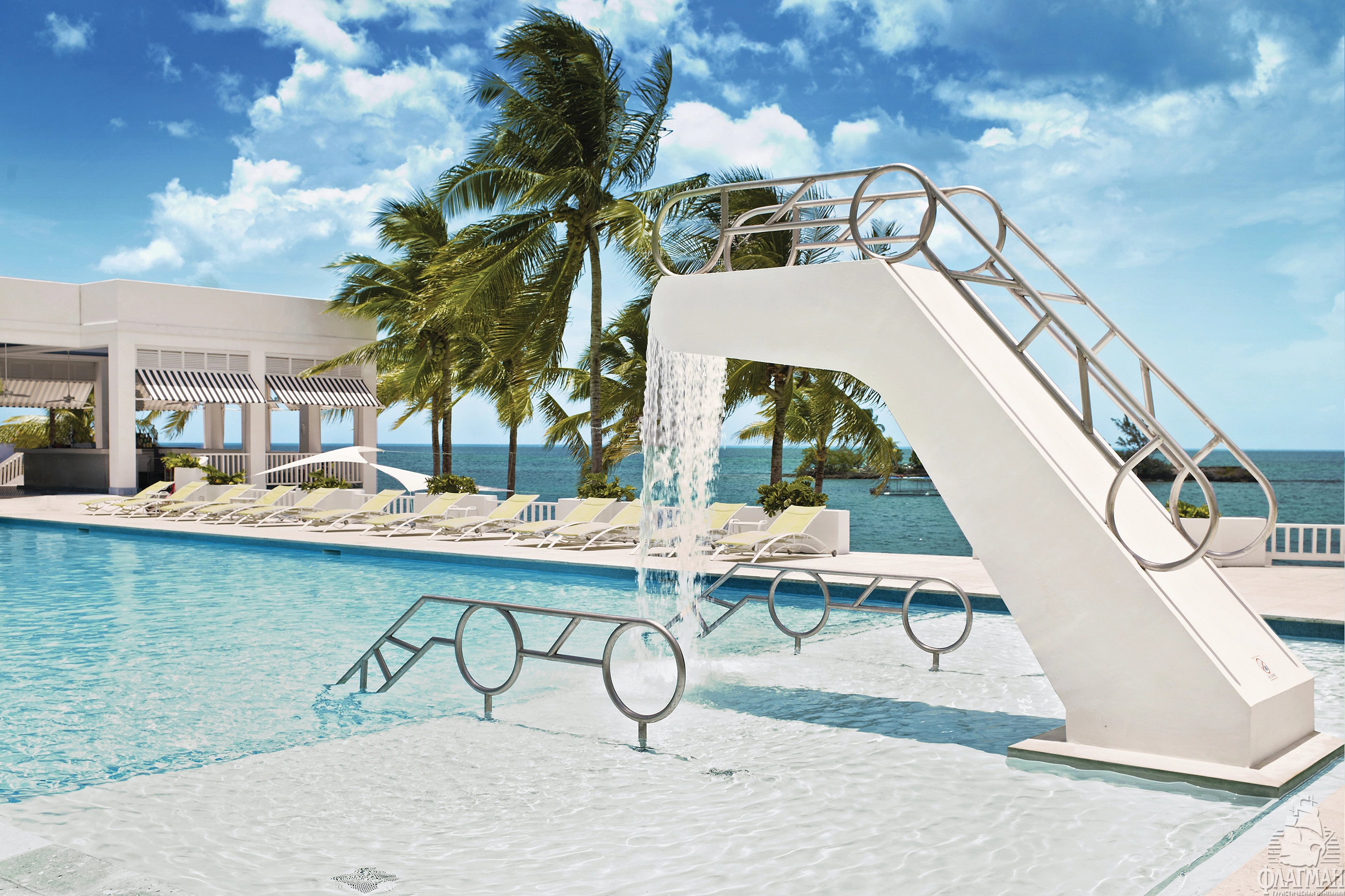 - 2 открытых бассейна и 4 джакузи (2 перед пляжем и 2 в зоне Spa)