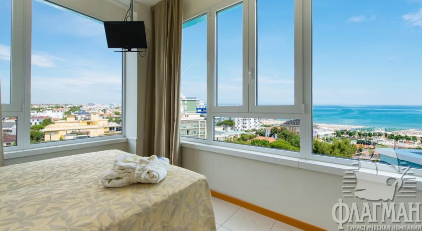 Расположен в 16 км от аэропорта г. Римини, в нескольких метрах от моря и площади Чикарини