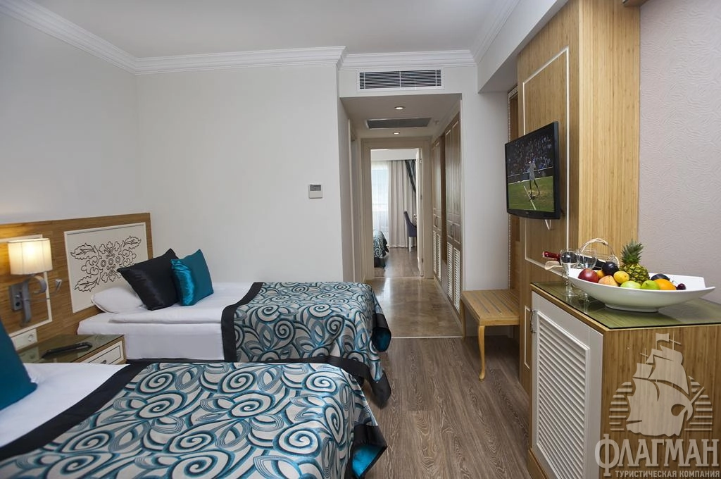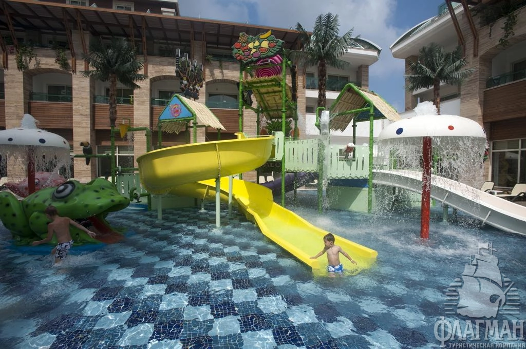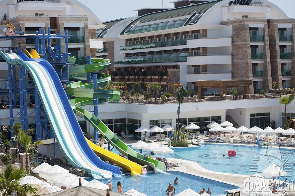 Кристалл Вотерворлд Ресорт и Спа 5* – новый отель, 2013 года постройки, в беклекском районе Серик, на самом берегу моря с песчаным пляжем длиной 500 и шириной 100 метров. Как следует из названия, главное достоинство отеля – большой современный аквапарк с водными аттракционами. Для взрослых работают несколько тематических ресторанов и баров, бильярдная, боулинг, тренажёрный зал и СПА-центр площадью 700 м2. Желающие могут научиться играть в гольф на поле расположенном неподалёку. Отель CRYSTAL WATERWORLD входит в гостиничную сеть “CRYSTAL HOTELS & RESORT” объединяющую качественные пятизвёздочные отели на основных пляжных курортах Турции. Подходит для спокойного семейного отдыха с детьми.