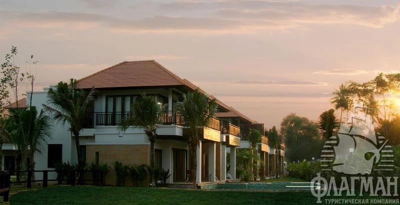Состоит из 3-х зданий (4 этажа) и вилл (2 этажа), всего 112 номеров.