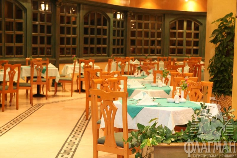 - основной ресторан Green House: шведский стол, вместимость 220 человек в помещении; завтрак с 07:00-10:00, поздний завтрак с 10:00-11:00, ужин с 19:00-21:30, ночные закуски с 23:00-00:00.
