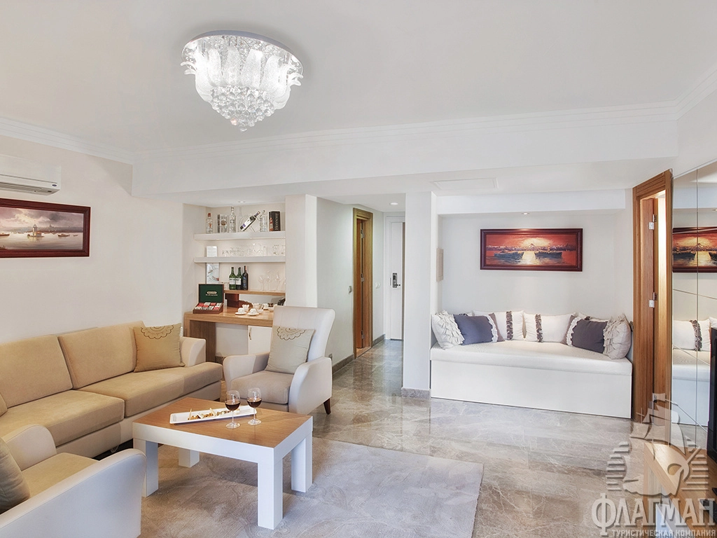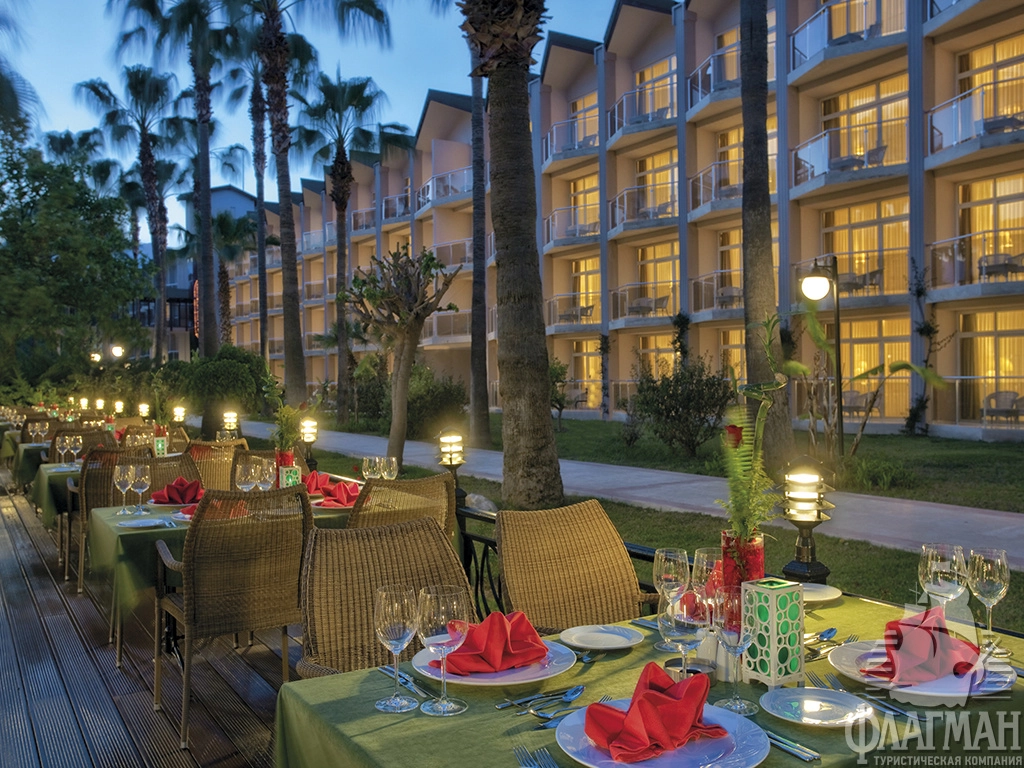 Добедан Ворлд Палас 5* – занее назывался Alva Donna World Palace. Находится в красивом местечке Кириш, в регионе Кемер. Это уютная, "крепкая пятёрка" входящая в турецкую сеть отелей Dobedan Hotels. Сеть можно назвать бутиковой, отели не гигантские, по цене "выше среднего", но не супер-делюкс. Упор в них сделан именно на качестве обслуживания, питания и сервисе. Инфраструктура отеля, отделка номеров, интерьеры, мебель не новые, но соответствуют своей категории. На территории отеля есть несколько просторных бассейнов, аквапарк с водными горками, амфитеатр для вечерних шоу, бары, рестораны, очень достойный СПА-центр, фитнес, теннисные корты и многое другое. Главный лозунг отеля - комфорт и уют. Рекомендуем для отдыха семей с достатком немного выше среднего.