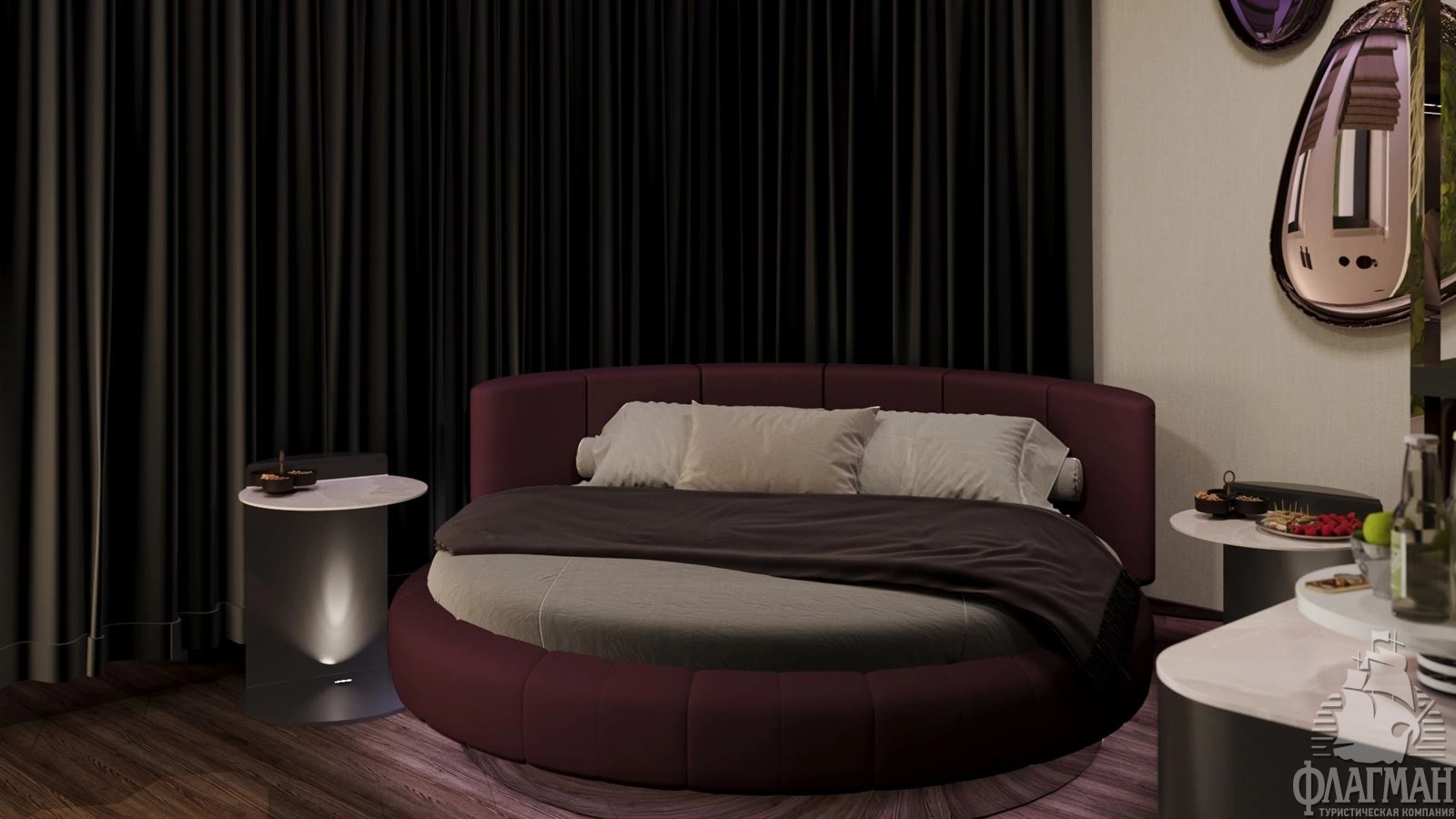 - Honeymoon suite - номер: 21 кв.м, круглая двуспальная кровать, джакузи, балкона нет, вид на бассейн/море, макс. 2 чел.