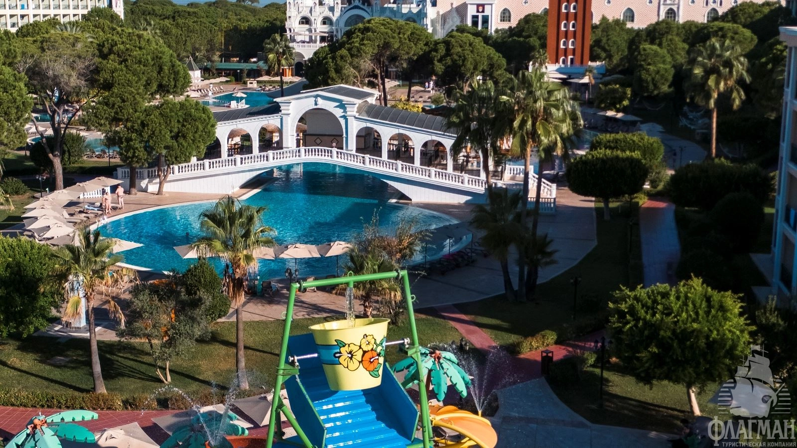 Отель построен в 2003 году, общая площадь 100 000 м2, последняя реставрация и ребрендинг сделаны в 2025 году. Ранее носил название VENEZIA PALACE DELUXE RESORT 5*