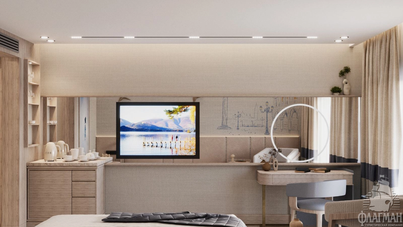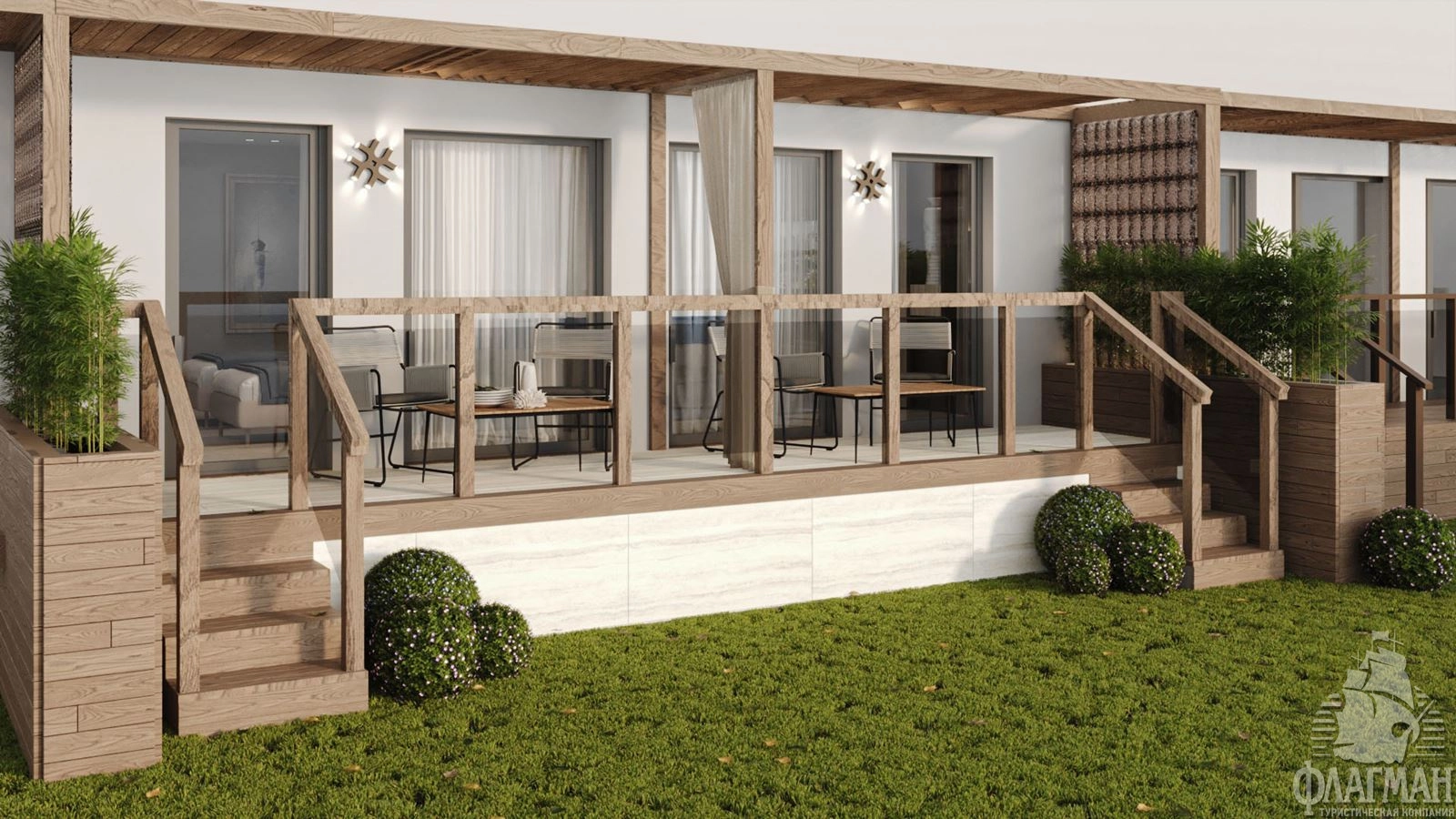 - Deluxe standard land view - номер: 28-30 кв.м, двуспальная кровать или 2-3 односпальные, кухня, балкон, вид на окрестности, макс. 3 чел.