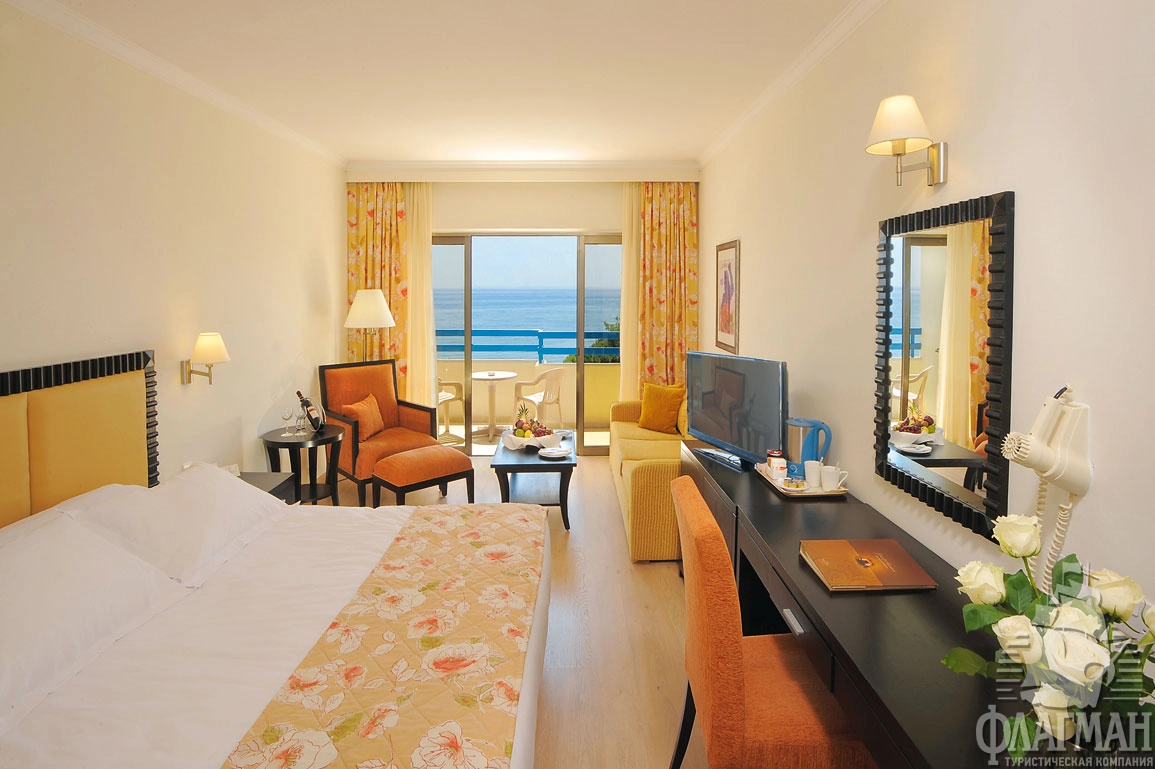 - Standard Sea View (макс. 3 чел., 26 м2) - однокомнатный стандартный номер, есть гостиный уголок с журнальным столиком и креслом, ванная комната, балкон с видом на море.