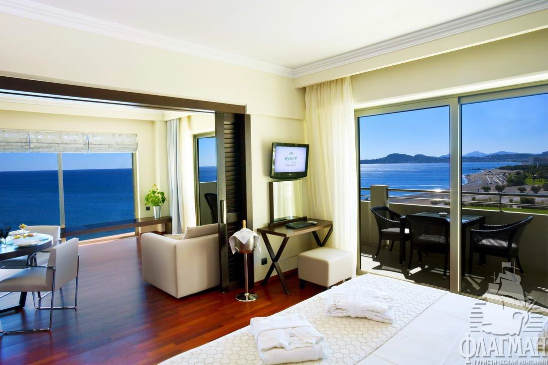 - elite superior room SV (вид на море, однокомнатный номер, спальня с гостиной зоной, осн. кровать – двуспальная или 2 односпальные, доп. – софа, макс. 2+1 чел., 36 м2),