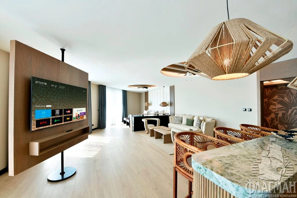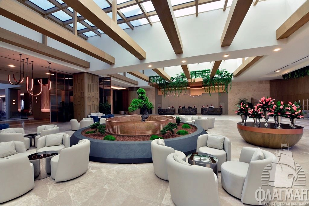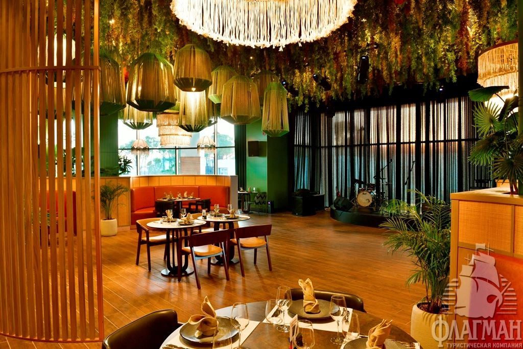 Этно Белек 5* – новый (2024 г.) люксовый отель на анталийском побережье. Позиционирует себя как курорт для ценителей дорогого качественного отдыха. Кредо отеля - разные культуры, разные личности, разные миры и разные мечты вместе, как одно целое – находит свое отражение в его архитектуре, дизайне и в организации сервиса. К услугам гостей персональные ассистенты, 24 часа действует "Ультра Всё Включено" с большим выбором импортных напитков и коктейлей. В отеле 7 a la carte тематических ресторанов, 18 баров, 7 бассейнов (большинство с подогревом), хороший аквапарк: для взрослых 8 горок, для детей - 7. Пляж длиной 300 метров. Для малышей и тинейджеров работают клубы по возрастам (2-4 года, 4-12 лет, 13-17 лет), есть 2 детских ресторана. Взрослые оценят современный СПА-центр с саунами и массажными кабинетами, тренажёрный зал, тенисные корты, занятия йогой, прокат велосипедов, дневную и вечернюю анимацию с участием приглашённых артистов. В гостинице широкий выбор вариантов размещения: от делюксов (57..72м²) и сьютов (78..134м²) с видами на сад и на море, до двухэтажных вилл 160-675м². Рекомендуем парам и семьям, кто любит новые, современные, качественные отели.