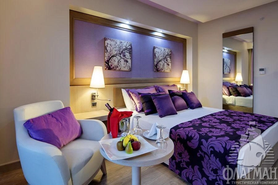 6 двухкомнатных club deluxe suite room (вид на море, гостиная, спальня с дверью, макс. 4+1 чел., 67–69 м2);