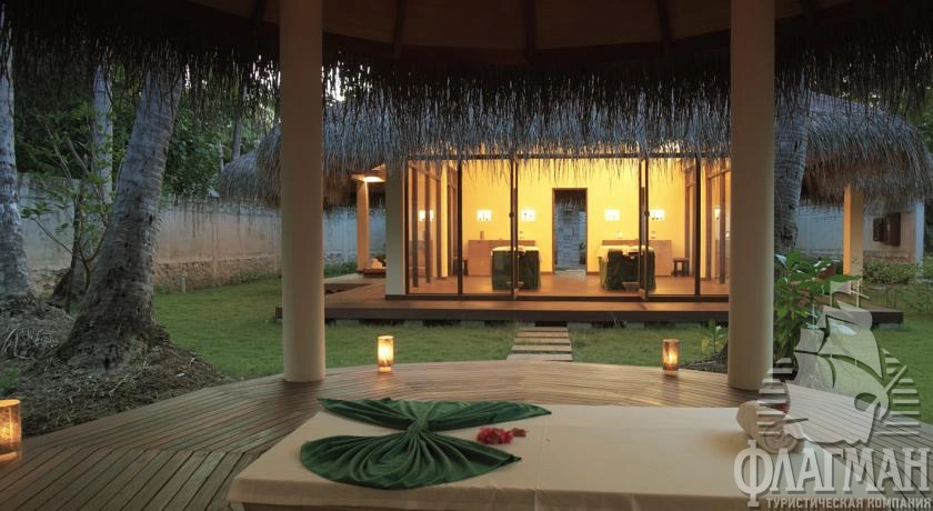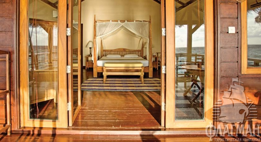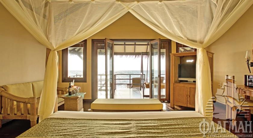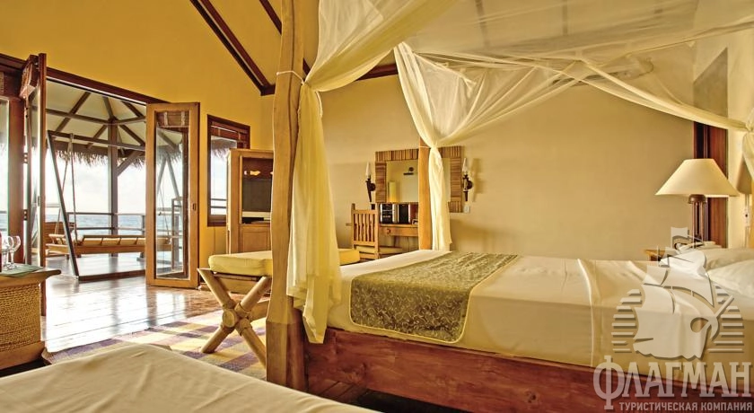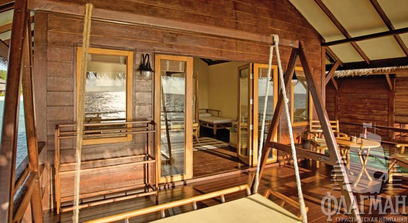 16 Water Villa (90 м2, макс. 2 чел.). Водные бунгало расположены на деревянных сваях в водах лагуны. Состоят из спальни, ванной комнаты с джакузи и душевой кабинкой. Есть просторная терраса с двумя лежаками. Каждая вилла имеет прямой спуск в океан. Размещение детей до 12 лет не разрешено.