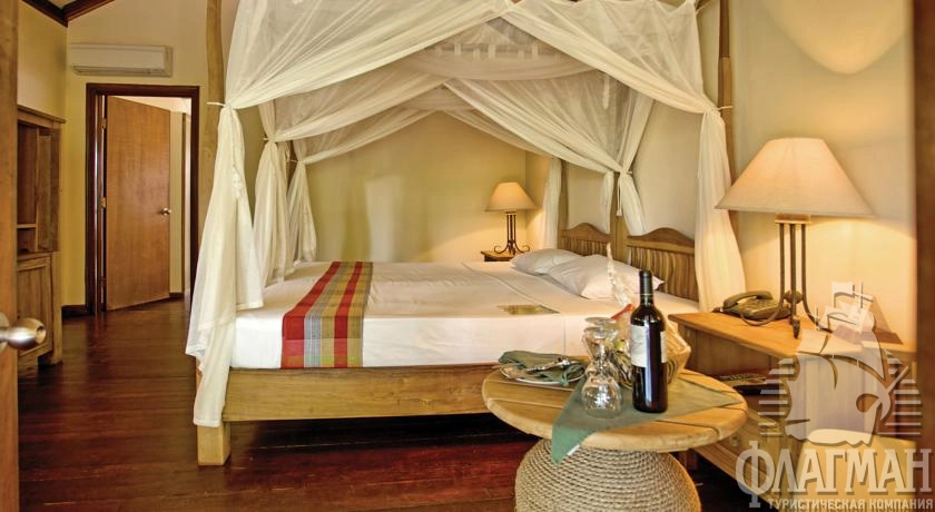 94 Superior Villa (54 м2, макс. 3 или 2+1 чел.). Просторные береговые виллы расположены в северной и восточной частях острова, в блоках по 2 номера в каждом. Состоят из спальни, ванной комнаты с душем на открытом воздухе, террасы. Прямой выход к морю. Перед каждым номером – 2 шезлонга на пляже. Есть номера interconnecting.