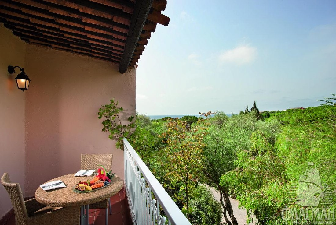 Комплекс FORTE VILLAGE IL BORGO 4* расположен на склоне холма, окруженном приморскими соснами и тропическими растениями.
