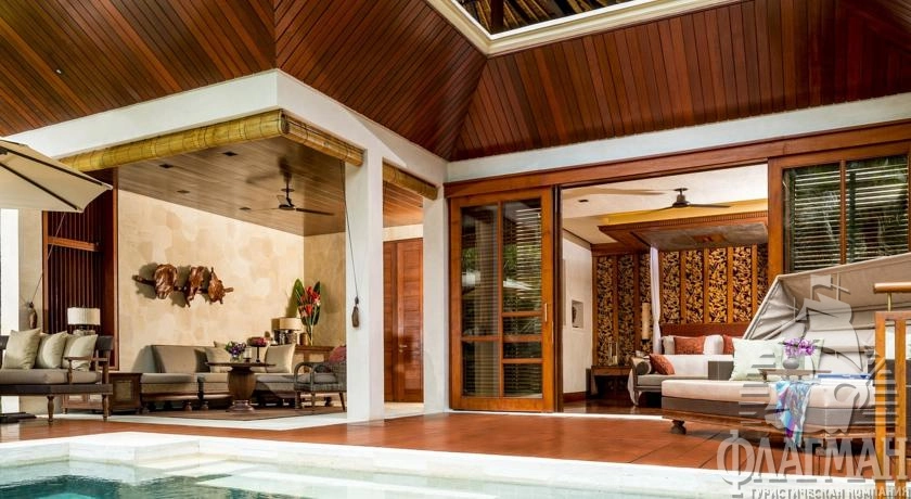 - 2 Sayan Villa (312 м2, расположена на самой высокой точке отеля, отдельная регистрация гостей, отдельный въезд на территорию виллы. Гостиная с зоной столовой, спальня, терраса, открытый бассейн, сад)