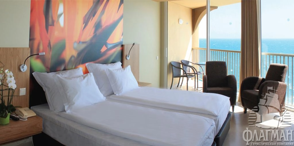 - DBL Superior Sea View (вид на море, расположены на 4 верхних этажах, халат и тапочки, бесплатный интернет Wi-Fi, макс. 2+2 или 3+1 чел.),