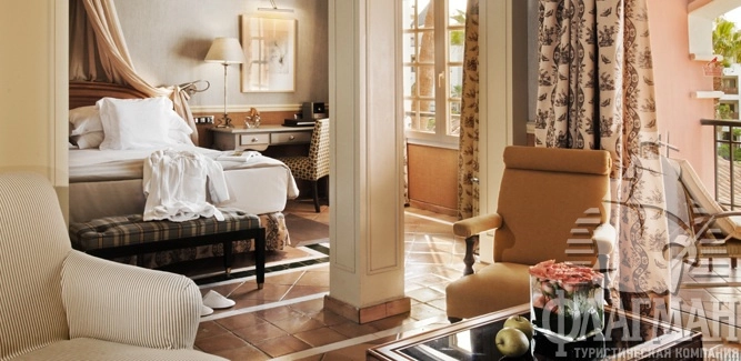 - 22 suite (гостиная и спальня; вид на сад или море, 2 телефона, макс. 3 чел., 50 м2),