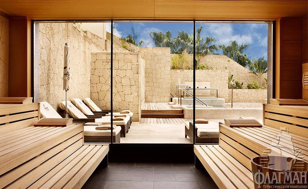 - SPA Bahia del Duque Resort (помимо типичного набора услуг SPA предлагает своим клиентам посетить единственный на острове центр талассотерапии; выбор процедур на основе алоэ вера и вулканических камней – природных ресурсов Тенерифе; SPA включает 20 комнат для процедур, 5 из которых находятся на открытом воздухе, 2 VIP-кабины, сауна, массажный душ и проч.)