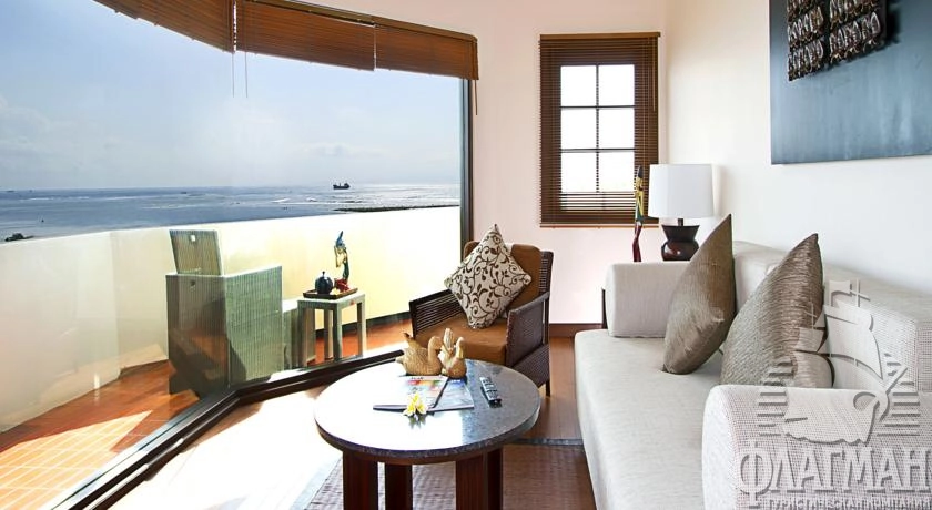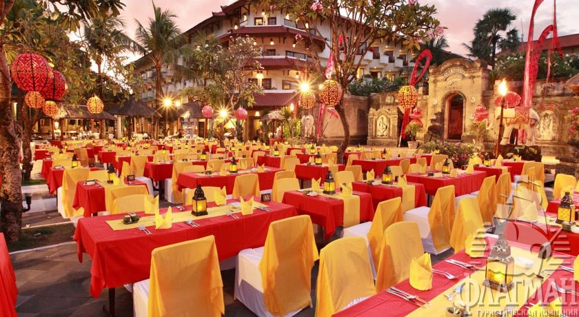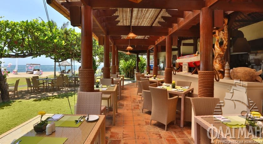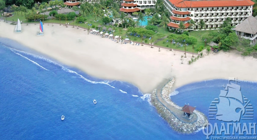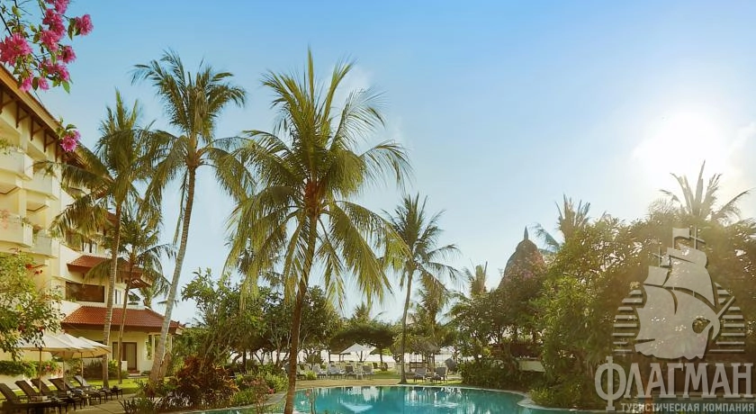 Расположен на курорте Танжунг Беноа, в 12 км от аэропорта, в 13 км от Куты, на берегу моря.