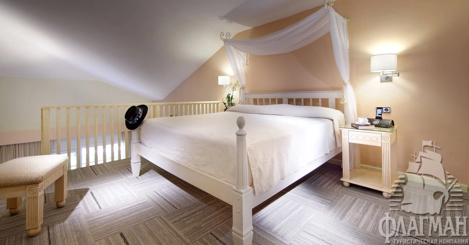 - 60 Loft Suite (двухуровневый номер: на первом уровне – гостиная с диван-кроватью и ванная комната, на втором уровне – спальня с 1 супружеской или 2 двуспальными кроватями, 2 ТВ, халат и тапочки, макс. 2+2 или 3 чел., некоторые номера с видом на море, 48,5 м2),