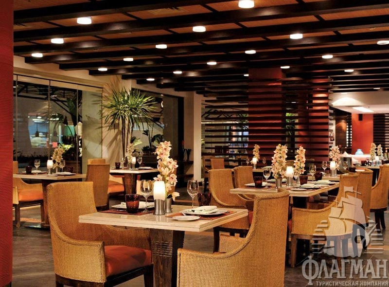 - рестораны a la carte: 3 (Mezzaluna -итальянский ресторан, The Palms & Grill Bar - морепродукты и мясо гриль,открыт на обед и ужин, Silk Road -тайская, индийская, азиатская кухня , открыт на ужин)