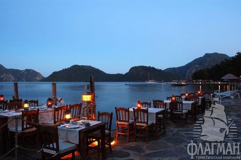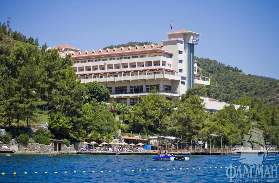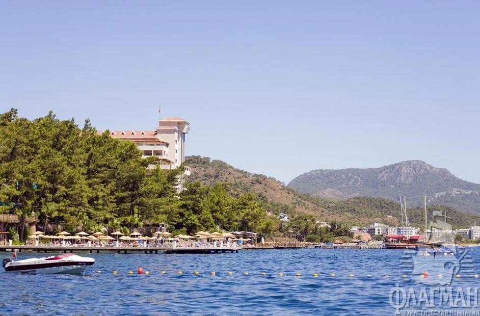 Расположен в 90 км от аэропорта г. Даламан, в 5 км от центра г. Мармарис, в 3 км от поселка Ичмелер, на берегу моря.