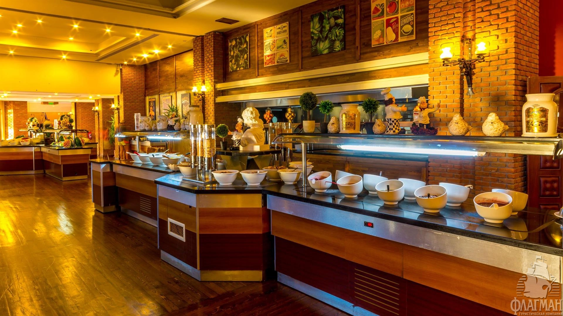 В концепцию входит: завтрак, обед, ужин - шведский стол, полдник, ночной суп, поздний завтрак, снэк в определенные часы, мороженое (в течение одного часа на обед и ужин), диетическое и вегетарианское меню, безглютеновое и безлактозное меню (по запросу), местные алкогольные и безалкогольные напитки (10.00 - 00.30)