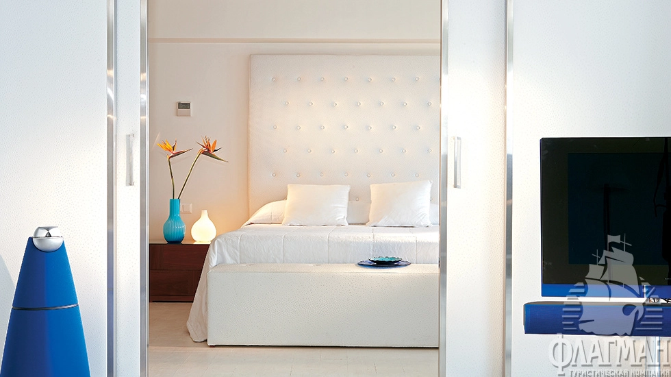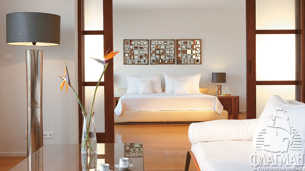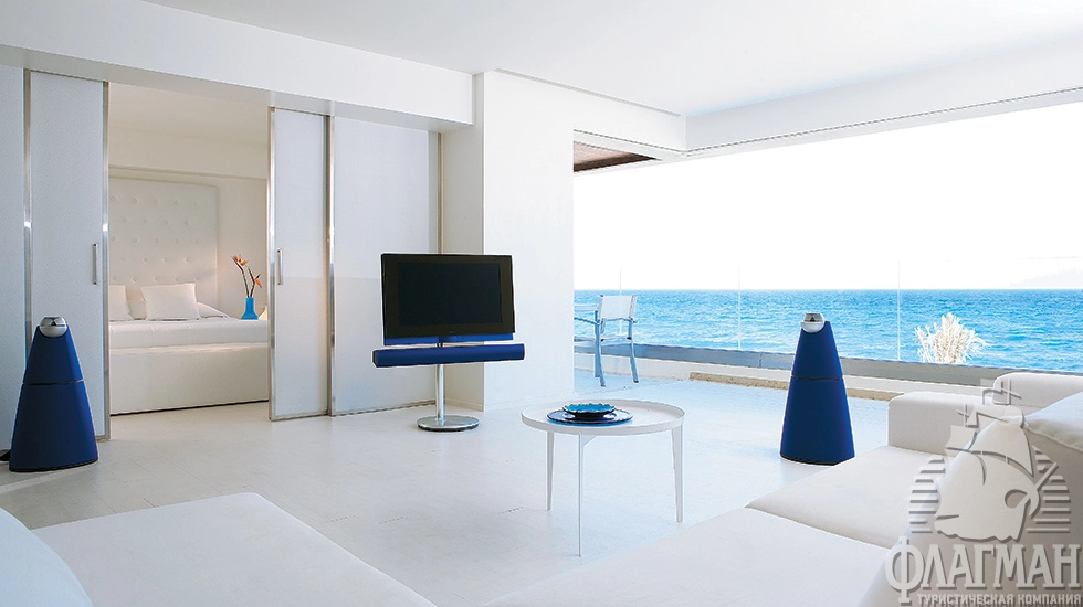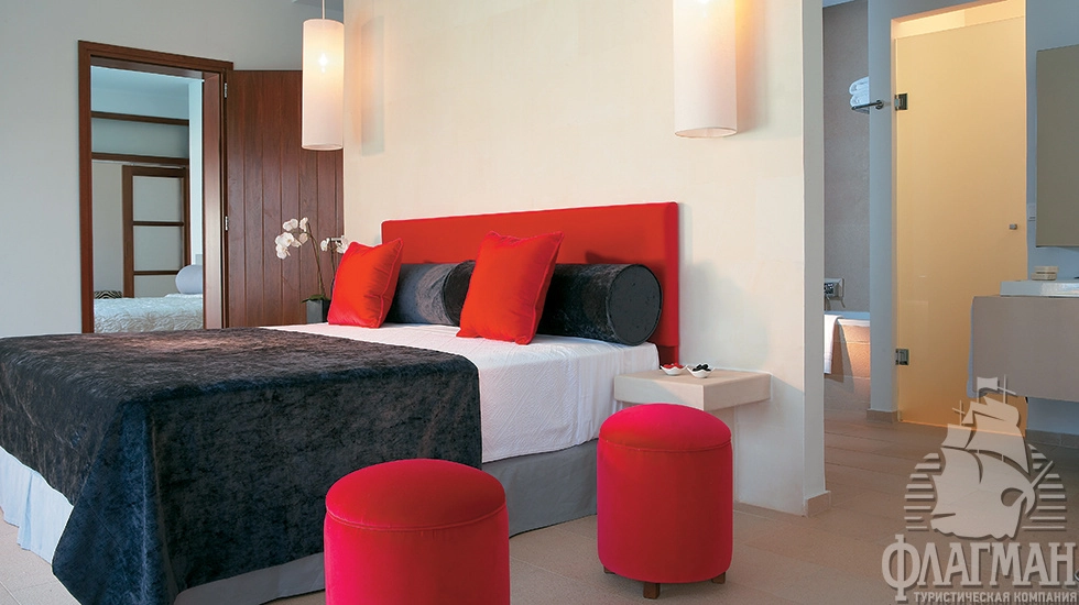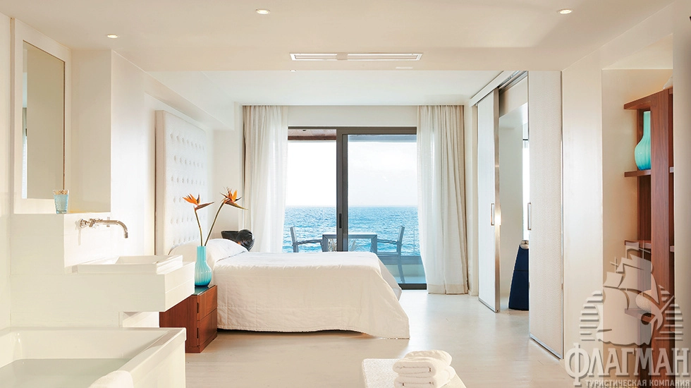 - grand suite one bedroom with SF (прямой вид на море, расположены в крыле Lagoon, спальня и гостиная с раздвижной дверью, двуспальная кровать, доп. – софа, макс. 2+1 чел., 90 м2),