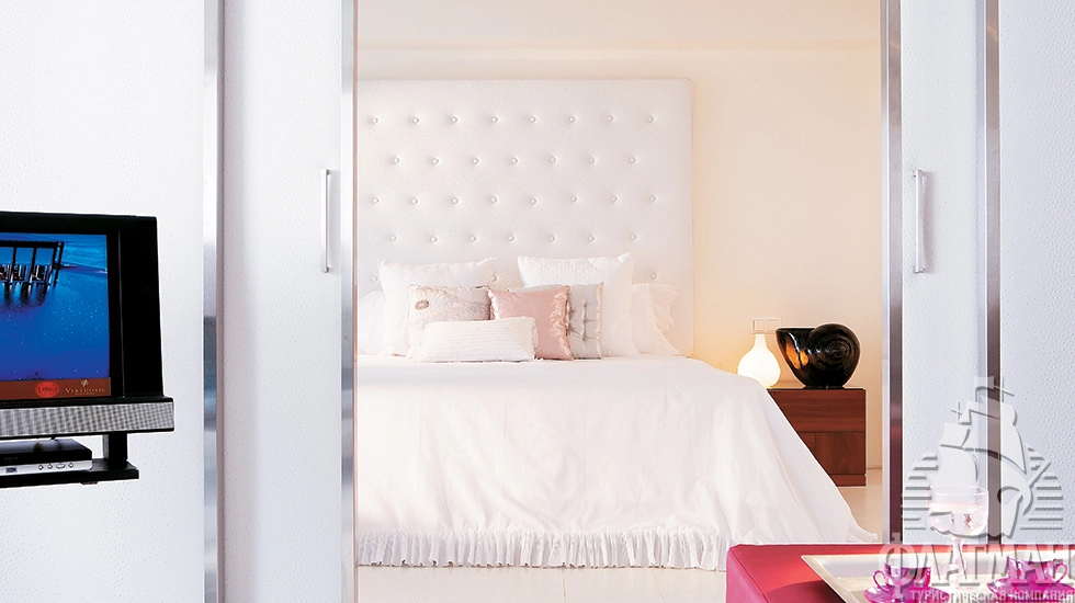 - luxuryroom SV/SSV or lagoon view (вид на море, боковой вид на море или лагуну, расположены в крыле Candia и Lagoon, спальня с гостиной зоной, основная кровать – двуспальная, доп. – кушетка, макс. 2+1 чел., 35 м2),